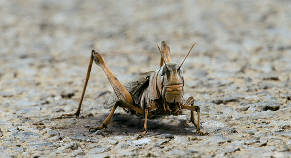 「蚱蜢一般是綠色的,但若是過度集中的話,就會變種。